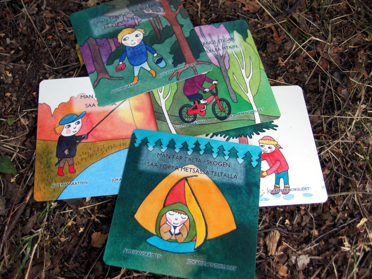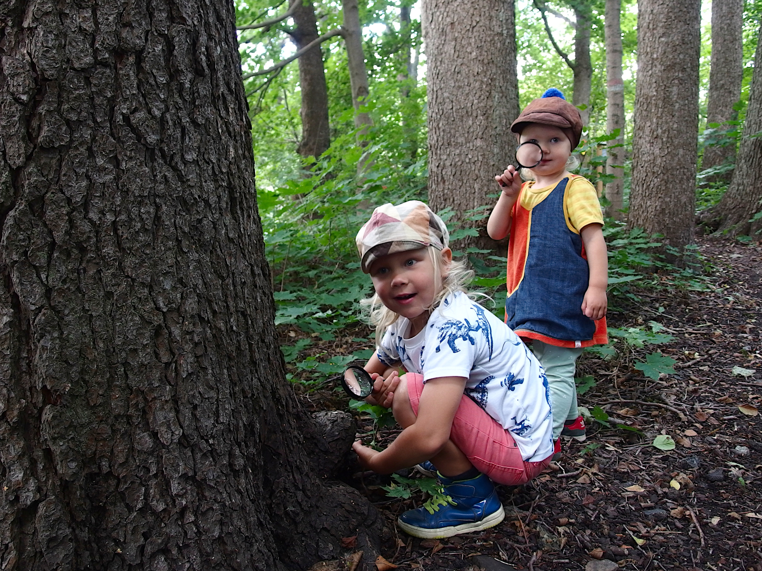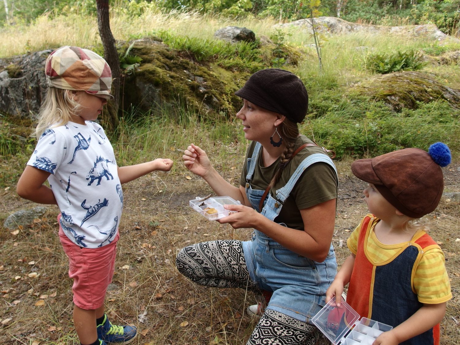 En ryggsäck innehåller redskap för två naturforskare. I ryggsäcken hittar du instruktioner för vad du ska göra och de redskap du behöver för att utföra uppgifterna. Syftet med uppgifterna är att väcka olika sinnen och öva sig på precision och balans. Rekommenderad ålder för uppgifterna är 6-8 år och det är värt att reservera helst en timme för att utforska stigen.