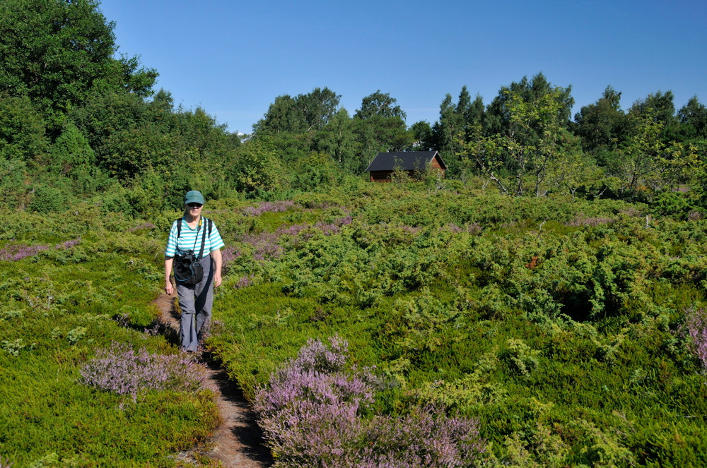 Den en och halv kilometer långa rutten slingrar sig genom ljungfält och enrished till öns östra del. Där hittar du Vänös anrika kapellet och en vacker sandstrand. Tillbaka kommer man längs med samma rutt. Rutten är lätt framkomlig.