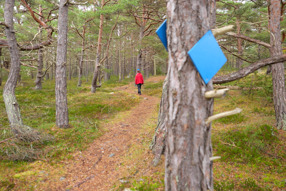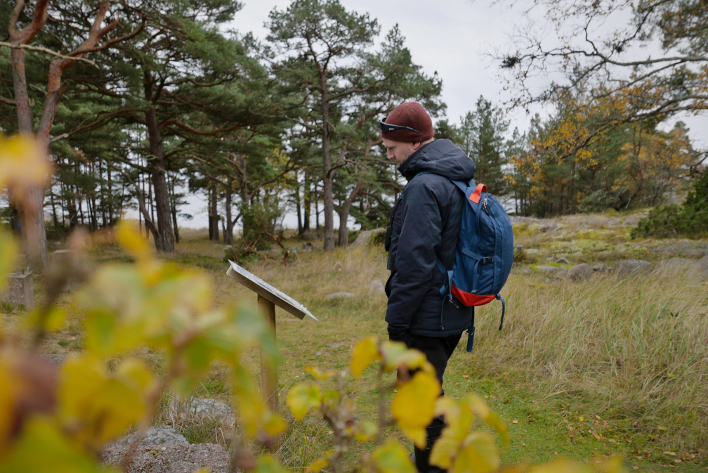 Stigen fortsätter längs den västra stranden där det finns en öppen sandstrand. Du avviker väl inte från stigen eftersom där finns många sällsynta växtarter och växtligheten mycket sårbar. På den västra stranden finns fantasifull skärgårdsskog med martallar som formats av höststormarna. Stigen kommer tillbaka till startplatsen, via skjutbanan till Lyhyt Ikävä vägen.