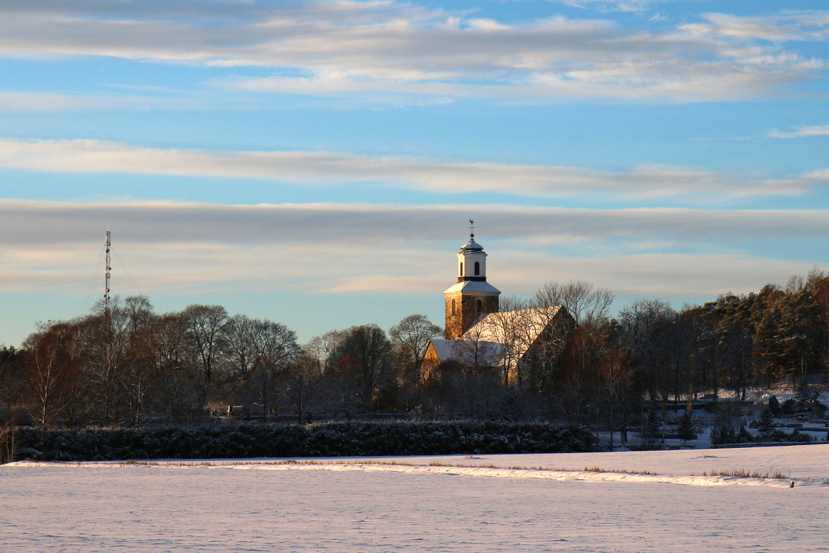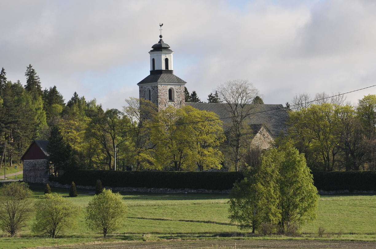 Glasmålningen i kyrkans altarfönster bekostades av bygdens son Amos Anderson och ritades av professor Armas Lindgren.