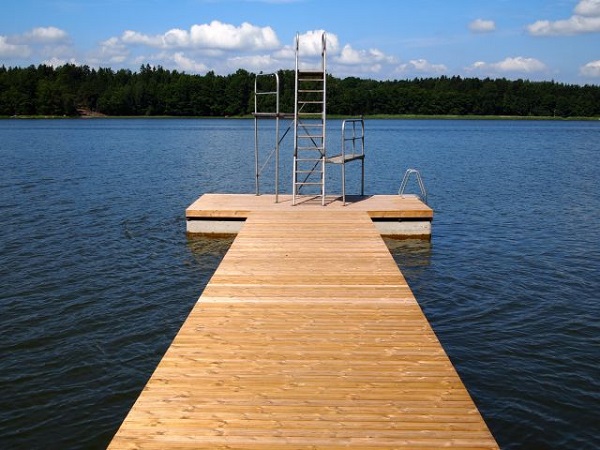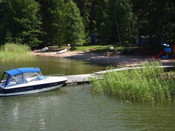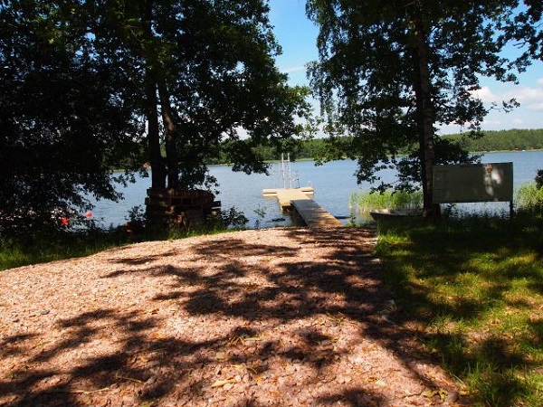 En fin simstrand med ett hopptorn och möjlighet till fiske.