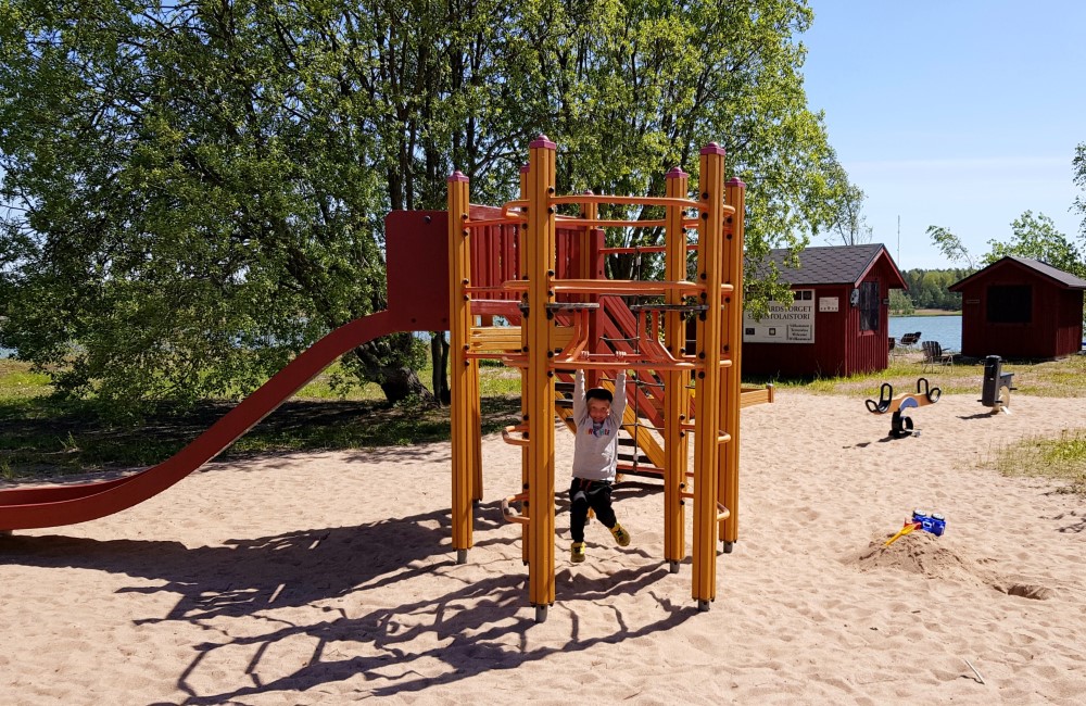 Ett stenkast från bryggan finns en lekplats för barn och Kimitoöns enda padelbana. Där kan man spela padel under bar himmel med havet som publik. Spelturer bokar du enkelt på www.kemionsaarenpadel.fi
