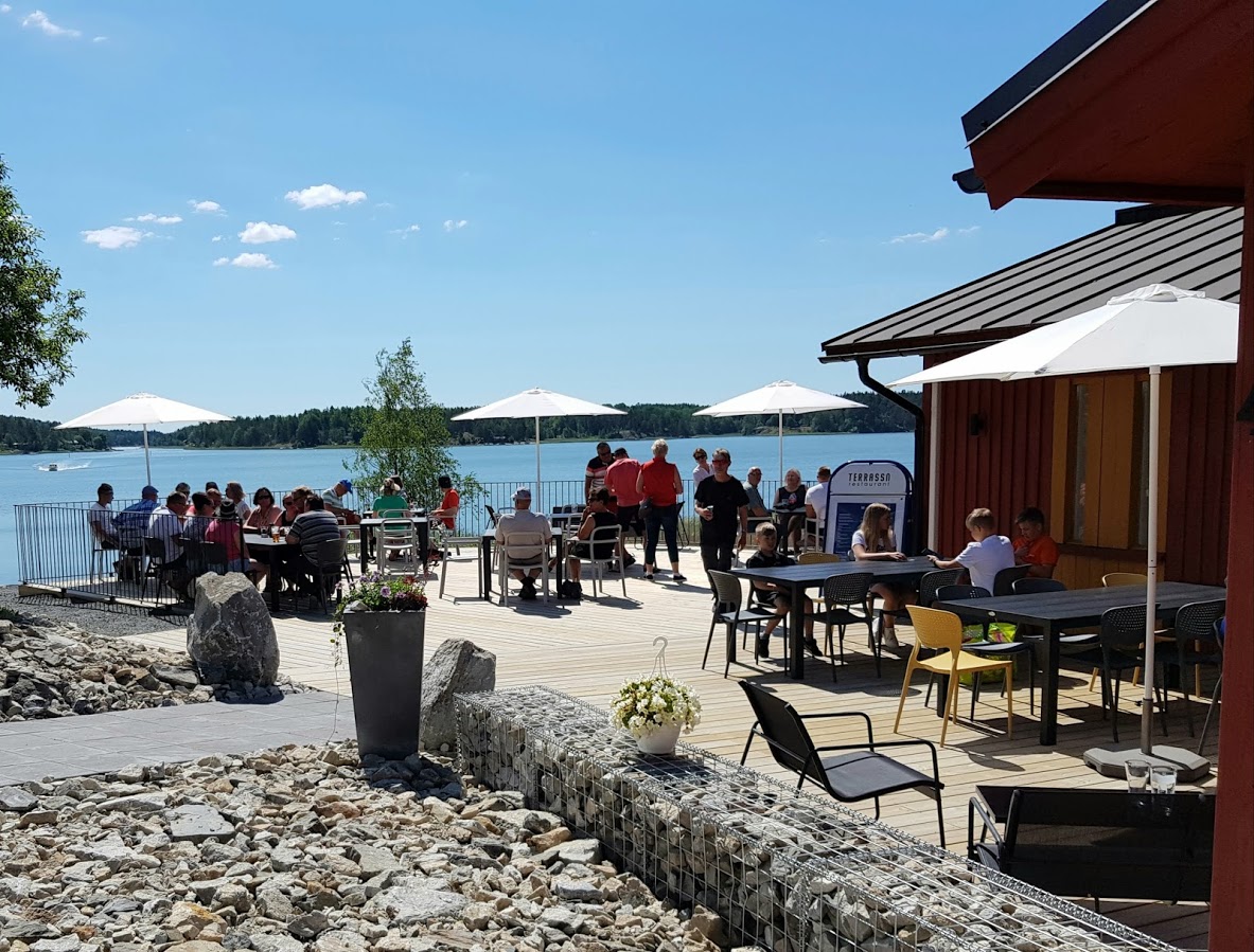 Kalkholmens pärla är sommarrestaurangen Terrassn, som serverar enkel och god mat och vars rymliga terrass erbjuder en underbar utsikt mot Västanfjärden. Utanför sommarsäsongen (juni-augusti) håller Terrassn öppet under enstaka veckoslut och fungerar som beställningsrestaurang.