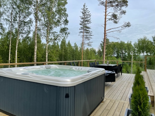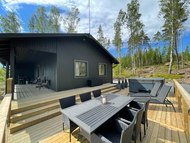 Villa Lyxfällan har en ny stor terrass där man kan koppla av. Under sommarsäsongen finns det solstolar och en utematplats till förfogande. Jacuzzi kan hyras mot en tilläggskostnad.