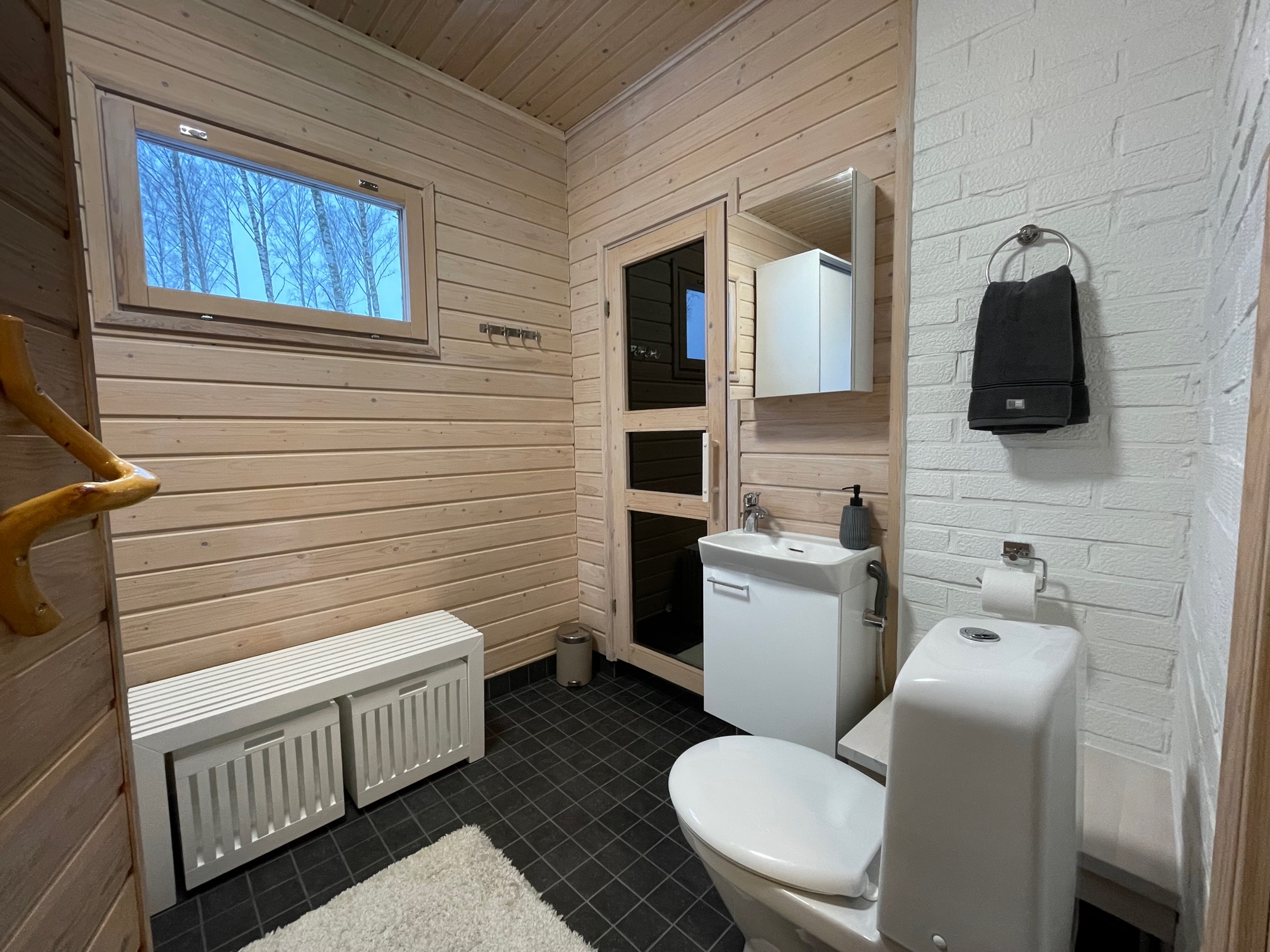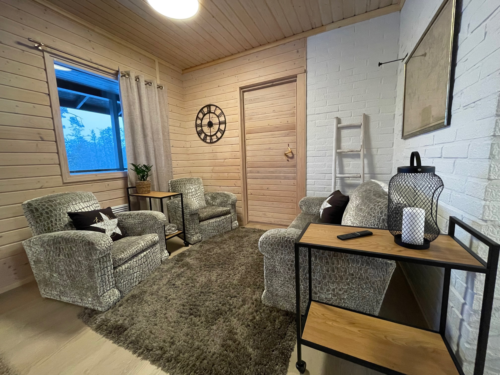 Stugan har två sovrum, i vardera sovrum finns en dubbelsäng. Fullständigt utrustat kök med matplats, litet vardagsrum, wc, dusch och bastu. Snabbt Wi-Fi gör det möjligt att även distansarbeta från Villa Lyxfällan. JBL högtalare finns.