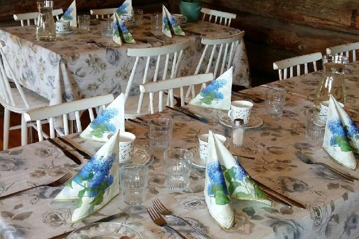 I den hemtrevliga uteserveringen eller inne i den mysiga traditionella matsalen kan du njuta av läckra hembakade kakor och smaklig hemlagad mat. Vi har även A-rättigheter och ordnar många stämningsfulla tillställningar under sommaren, med gästande trubadurer och andra musiker.